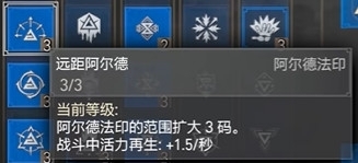2. 远程阿尔德法印:阿尔德法印的作用范围增加3码,战斗状态下活力再生速率提升至每秒1.5点