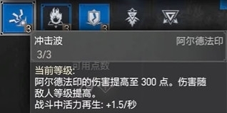 1. 冲击波:作为阿尔德法印的核心伤害手段,其效果主要取决于法印强度以及敌人当下的生命值状态。