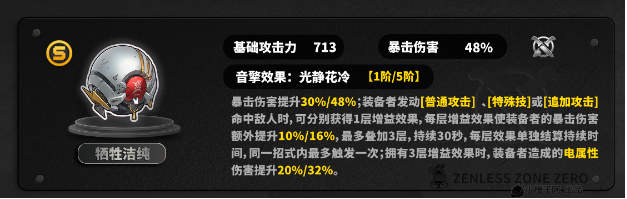 ,完美适配其核心机制。它提供了爆伤、增伤以及无视物理抗性,能大幅提高叶瞬光在“白毛状态”下的输出能力。