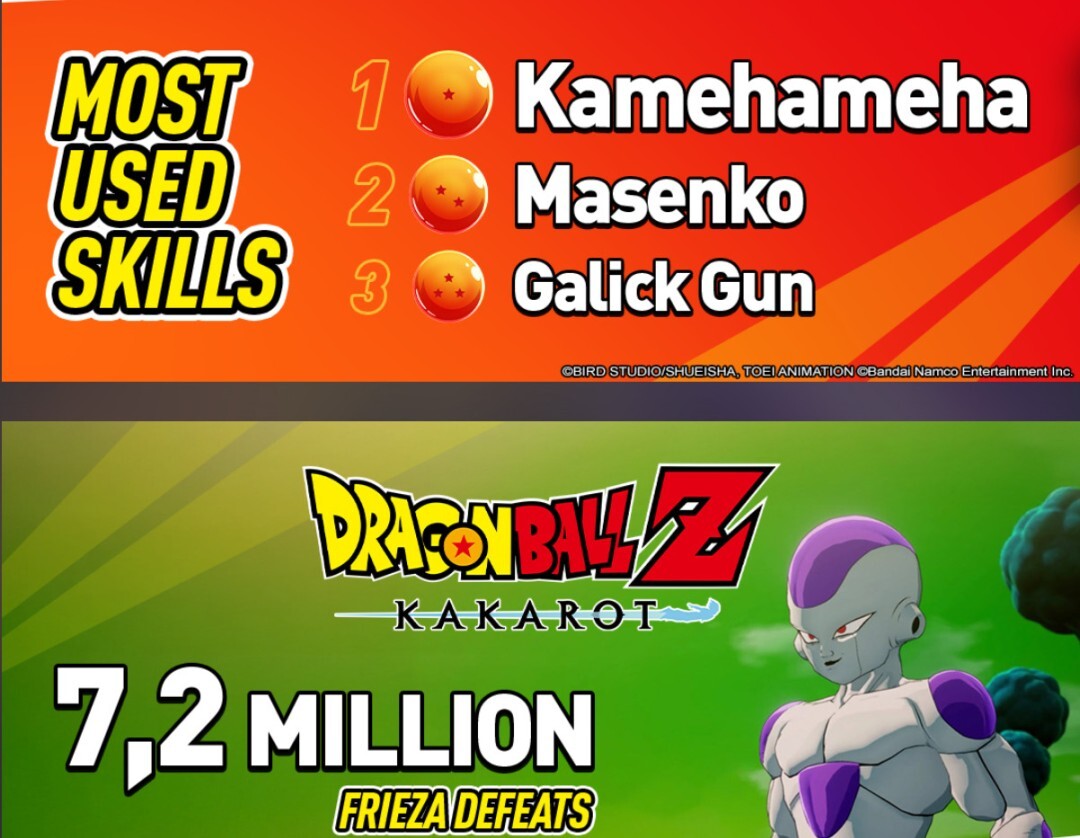 龟派气功(Kamehameha)和元气弹(Spirit Bomb)的使用次数分别达到了78亿次与19亿次。