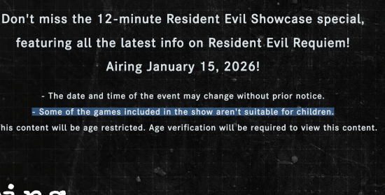 官方介绍里清楚说明,这次发布会会有“多款游戏”(Some of the games),还特意标注了“部分内容不适合儿童观看”。除了已定档2026年2月27日的正统续作《生化危机:安魂曲》会带来实机演示外,玩家们的猜测也指向了另外两个方向。