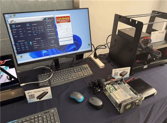 他们还展示了一款实际安装的EnerXCube 550电源,其功率为550W,内置65W PD功能,采用磷酸铁锂电池替代传统UPS电源常用的铅酸电池,电池容量达115.2Wh,在断电情况下仍可维持运行18分钟。