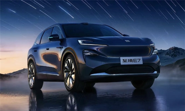 至境E7延续了至境SUV概念车所采用的“展翼元素”设计理念,其车身比例修长且体量饱满,轻盈而凌厉的线条与分体式灯组设计相互搭配,勾勒出极具动感的驭风鲨鱼前脸造型,而分体式星河展翼大灯也具有很高的辨识度。