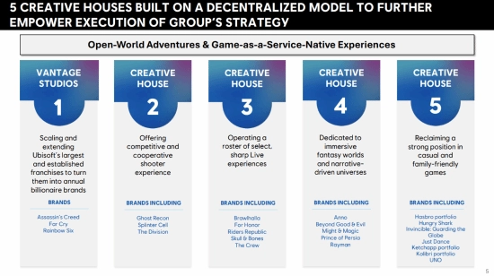 据外媒消息,在近期的业务调整举措中,育碧正式宣布将旗下游戏板块拆分为5个“创意事业部(Creative House)”。而借助这次组织架构的调整,育碧顺利引入了腾讯高达12亿美元的投资。作为合作的交换条件,腾讯得到了育碧估值最高的事业部25%的股权,该事业部正是负责《刺客信条》《孤岛惊魂》与《彩虹六号》这三大核心IP的开发与运营。