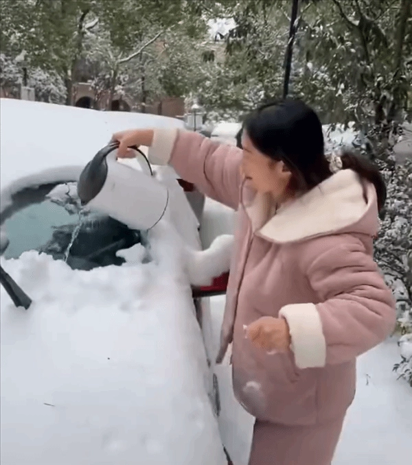 近期不少地方都下起了大雪,停在户外的车辆,玻璃往往会结上一层冰。要是直接用热水去浇车玻璃来除冰,玻璃很可能会因此炸裂。不过有位女子偏不信这个说法。