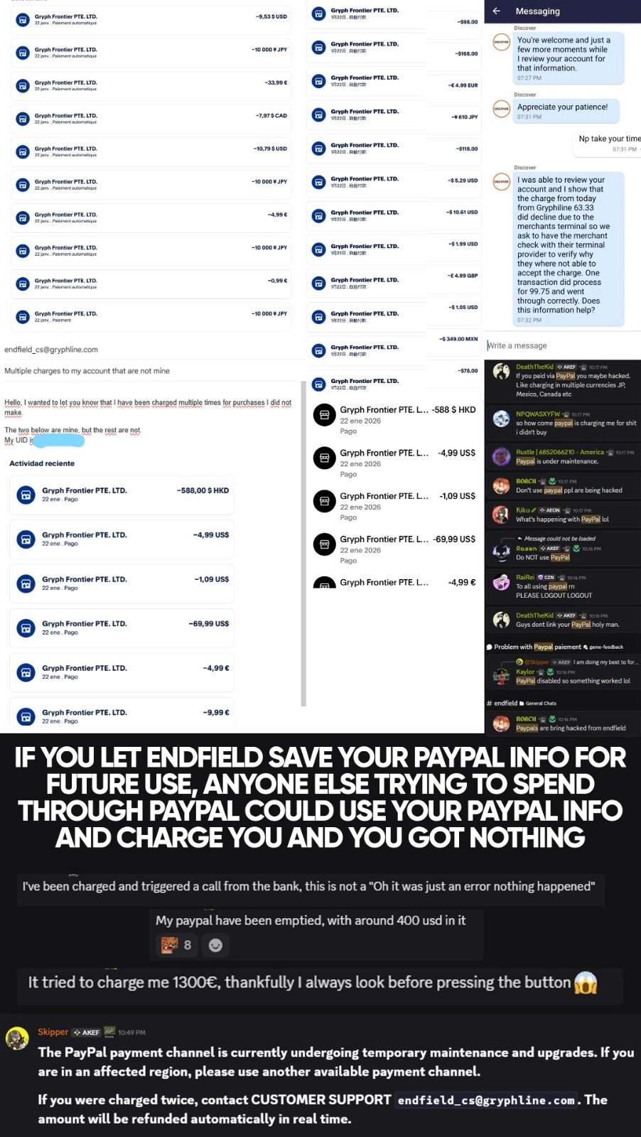 有玩家在社交平台反映,自己在游戏内购买时用PayPal完成支付后,PayPal账户竟遭入侵,出现了多笔不明交易,他们怀疑这可能和游戏的PayPal支付接口存在安全漏洞有关。据悉,只要是之前绑定过PayPal账号的玩家,都可能面临资金方面的风险。由于一些不明原因,第三方得以访问这些账户并进行消费,目前已有玩家因此损失了数千到数万美元不等。
