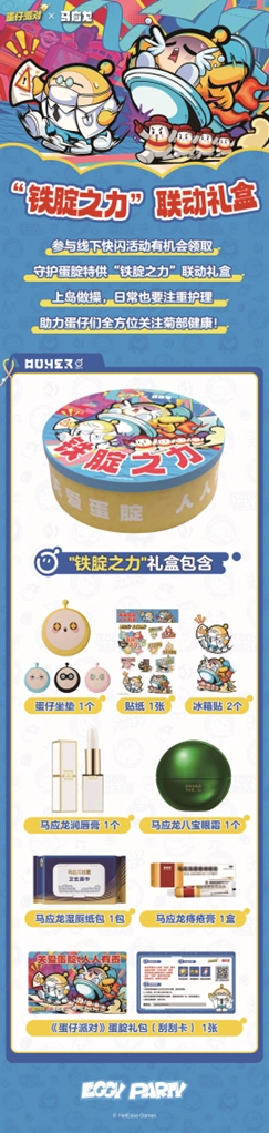 1月25日至2月23日期间,“关爱蛋腚”线下快闪活动将在武汉开展,参与活动还能领取《蛋仔派对》与马应龙合作推出的“铁腚之力”联动礼盒!蛋仔们,这次有了铁腚加持,肯定能行!