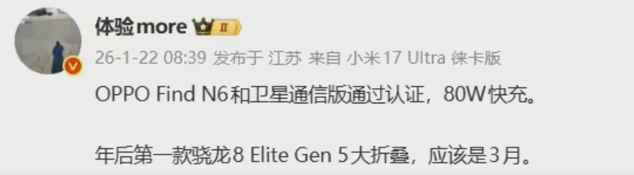 目前,OPPO官方尚未公布Find N6的具体发布日期,但多方消息证实其将于2026年3月正式亮相。随着春节后新品发布周期的开启,这款“全能折叠旗舰”能否重塑市场格局,值得持续关注。