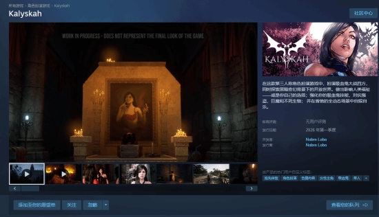 由Nobre Lobo制作的吸血鬼RPG游戏《Kalyskah》已在Steam商店页面上线,计划于2026年第一季度开启抢先体验阶段。