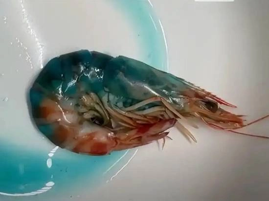 近日,上海的王女士表示,她在盒马线上购买了斑节虾,烹饪后却发现其中有一只虾呈现出“吓人的蓝色”。