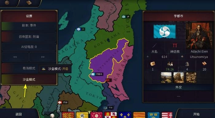 答:沙盒模式具备无限金钱、无限行动点与无限外交点数,并且可以自由调整游戏参数。