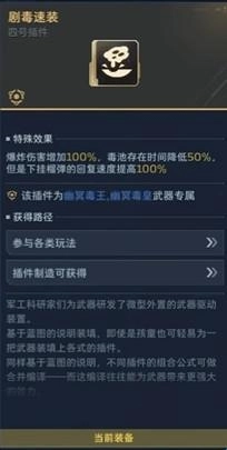 毒皇的插件按顺序装填:充能弹药、超频蓄能、钝化增伤、剧毒速装;
