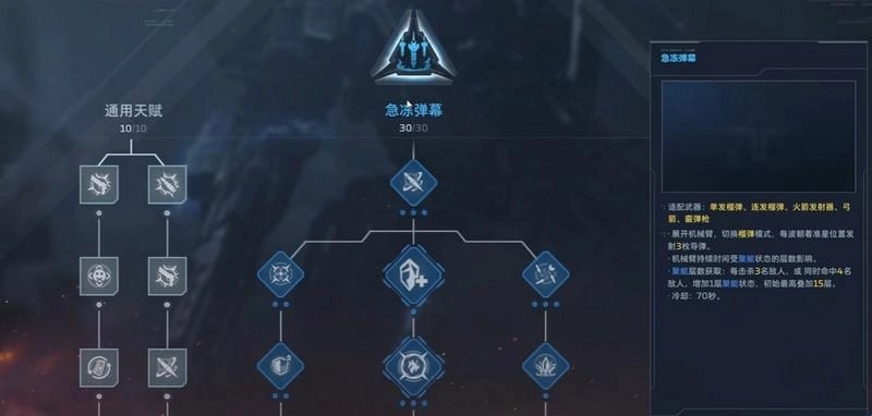 天赋务必选择【急冻弹幕】,同时要激活狂热与延长技能持续时间这两个节点。