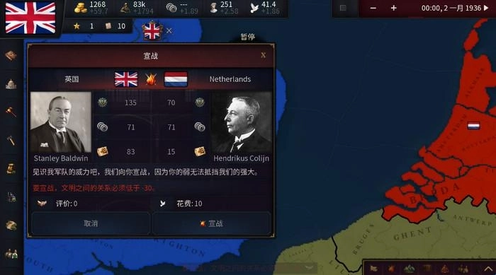1. 发起战争前,需将不同文明之间的关系值降至-30。