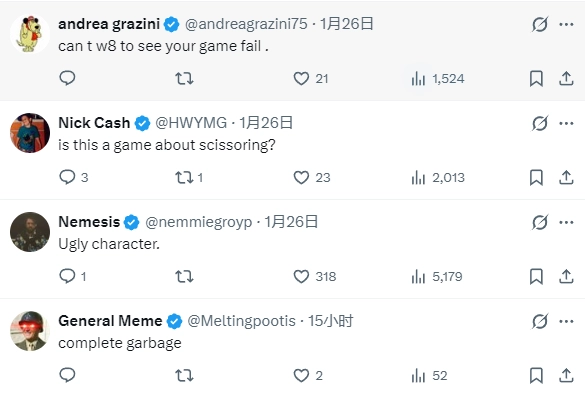 评论区里不少人对这个角色的外形表达了不满,有人说:“这角色太丑了,谁愿意花钱买这游戏啊”“真希望赶紧看到这游戏彻底扑街”“角色长得太难看了”。