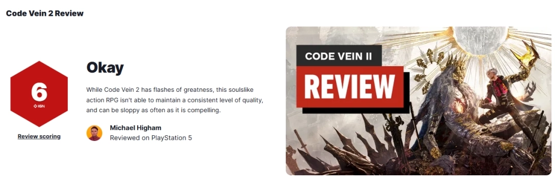 目前,《噬血代码》的Metacritic媒体评分已经公布,在42家媒体的评分中,本作的平均分为73分,其中IGN给出了6分的评价。