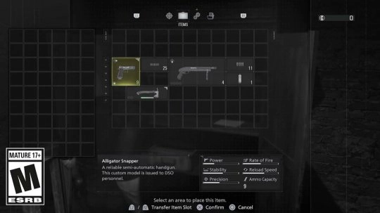 里昂采用7×10网格的公文包样式库存系统(和《生化危机4》的设计相似),既可以自由整理物品,也能通过自动排序功能归置;格蕾丝一开始配备的是8格容量的背包(与《生化危机2》的设定类似),需要找到扩展包来提升背包空间。