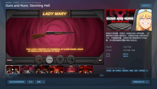 由RM120打造的复古风格FPS游戏《Guns and Nuns: Storming Hell》目前已上线Steam商店页面,计划在2026年第一季度开启抢先体验阶段。