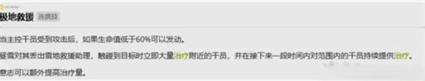 昼雪的连携技触发条件为:当主控干员的血量低于60%时,该技能会自动发动;其冷却时间为25秒,同时也能通过按下E键手动释放,以实现回血效果。