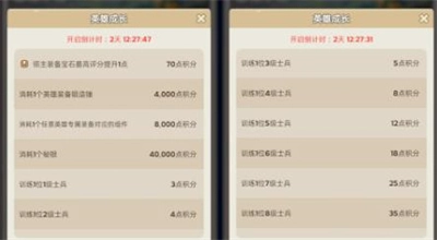 5、第四天:建议加快国王技能训练的进度。当天有几项必做的高积分任务:1. 全力训练士兵!士兵等级越高,获得的积分就越多,训练一名10级士兵就能得到60积分,这天是冲积分、拉开差距的重要节点。2. 消耗1个秘银,可直接获取40000积分,有储备的玩家可以果断使用!3. 使用英雄专属装备组件,能拿到8000积分,性价比非常高。小技巧分享:第三天时可以先不收取训练好的士兵,把训练进度卡住,等到第四天再结算,这样就能多获得一波士兵训练的积分。