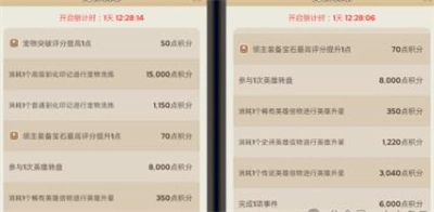 4、第三天:高积分任务必做清单:1. 用1个高级驯化印记洗练宠物,直接获取15000积分,这波绝对血赚!2. 参与1次英雄转盘,8000积分轻松收入囊中。3. 消耗传说英雄信物进行升星,可拿3040积分,稳赚不亏。4. 完成1项事件任务,6000积分到手,千万别忘记领取!