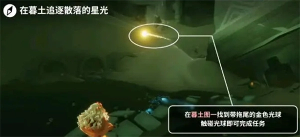 2、在暮土追逐散落的星光:进入暮土地图后,找到金色光球,只需轻轻触碰就能完成这一任务。