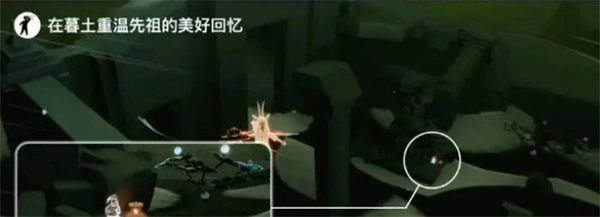 4、在暮土重温先祖的美好回忆:前往暮土地图的终点区域,在城墙内部正对面的阶梯旁(大花附近),点燃先祖并完成回忆收集的流程。