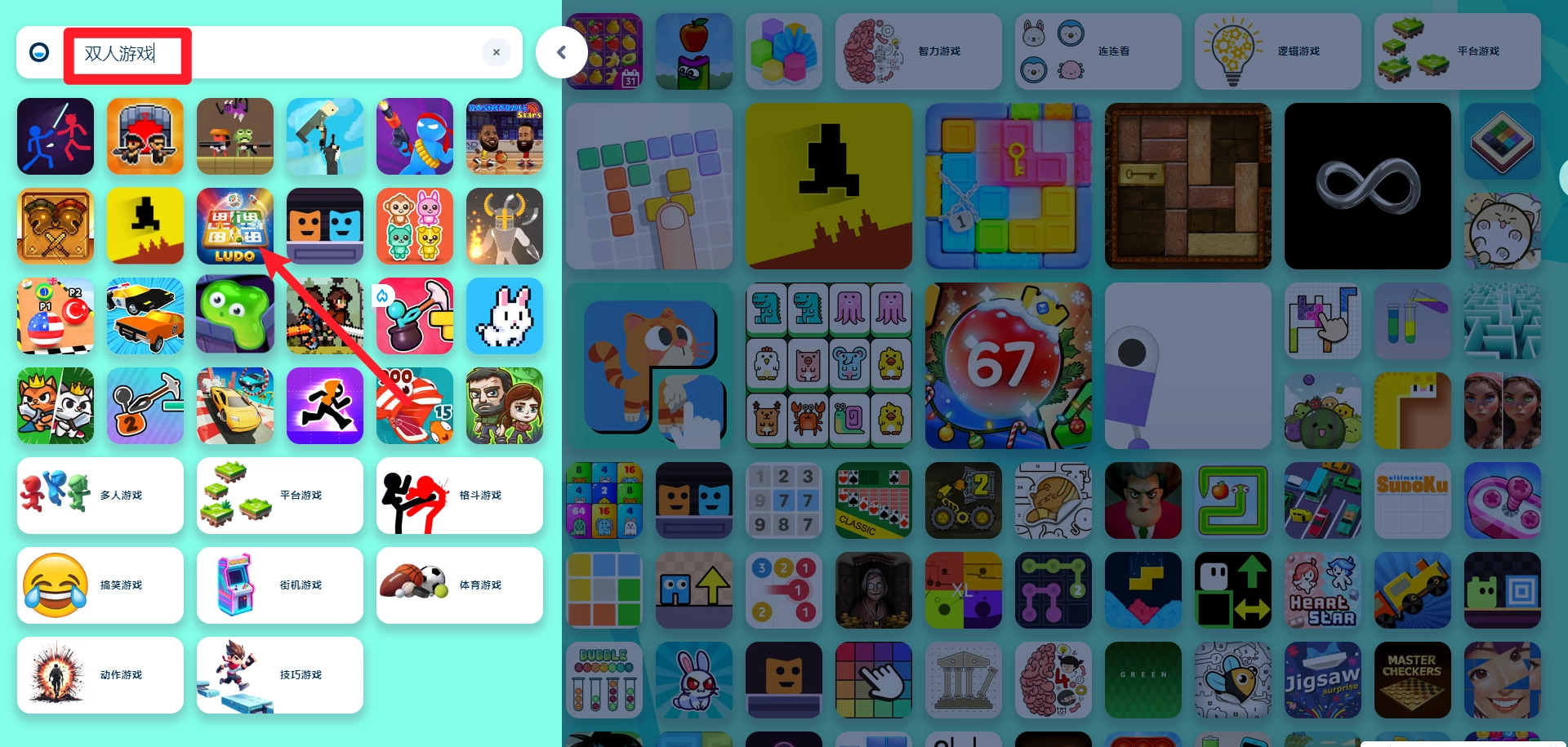 2、并且支持玩家输入关键字进行搜索喜欢的游戏。