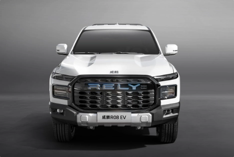 中央镶嵌RELY品牌标识,前舱盖上沿设有“威麟”字样,整体辨识度较高。