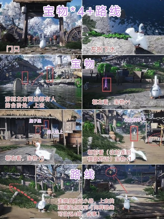 1、鹅想要,鹅得到:在一局游戏里成功藏好8个宝物就能解锁这个成就(要是时间够的话,去搜刮下路过的屋子、薅些路边的花花草草,还能拿到困难成就“千里薅鹅毛”,顺便再解锁一个拿球成就“冲出清河,走向世界”)