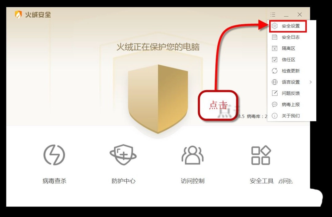 打开火绒安全软件,然后进入设置界面。