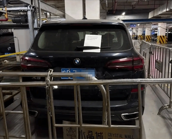 2月4日有消息称,有网友在网络上发布帖子表示,一辆悬挂安徽牌照的宝马SUV在杭州某商场的地下停车场被铁栅栏围住,并且栅栏上还锁上了锁。