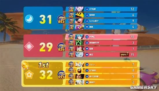 在常规的规则之外,《索尼克赛车》还可以定义一些趣味向的规则。比如此次的争金环比赛,除了比谁跑的快之外,更是要计算谁在赛道上,金环吃的多。在统计每队分数时,收集金环总数最高的一队会在总分上加10分。