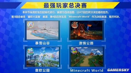 表演赛落幕之后,备受瞩目的总决赛随即拉开战幕。12位参赛玩家被划分为四个小组,首轮较量将分别在“暴雪山谷”“激情公路”“查欧公园”三张地图上展开。这三张地图不仅风格迥异、各有千秋,而且难度颇高,足以让顶尖选手们的精湛技艺得到全面展现。三轮比拼中,每位玩家都毫无保留地投入了全部精力——毕竟在如此高强度的赛事里,哪怕只是一个微小的失误,都可能让他们与冠军宝座失之交臂。