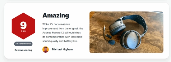IGN发布了针对游戏耳机Audeze Maxwell 2 Gaming Headset的评测,给出了9分的高评分。