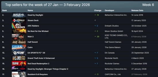 欢迎来到Steam畅销榜精选(仅统计付费游戏)。本周位居榜首的是经典恐怖对抗游戏《黎明杀机》,它近期不仅推出了与《怪奇物语》第二章的联动内容,还开启了折扣促销活动。值得关注的作品中,除了备受瞩目的光荣大作《仁王3》外,还有一款登山主题的独立游戏《孤山独影》——该作自上线后迅速走红,并且获得了IGN给出的9分优异评价。
