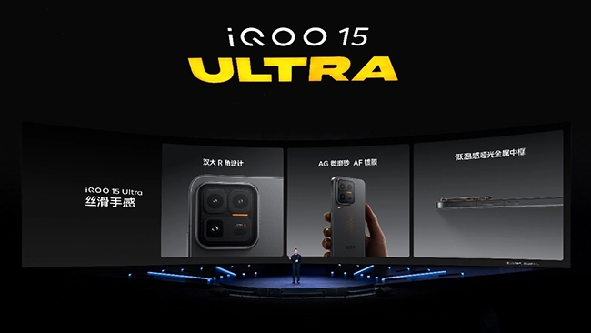 iQOO 15 Ultra 带来 2077(黑)与 2049(银)两种配色,运用透明未来舱 DECO 设计,配合 Monster Halo 呼吸灯及“Ultra”标识,识别度十足;冰穹风冷散热系统的进风口被巧妙设置在 DECO 下侧,既保证了隐蔽性又具备防尘效果;机身大 R 角和 DECO R 角的弧度相统一,低温感哑光金属中框与内收式后盖达成了顺滑衔接。另外,后盖采用全新的 Texture on Fiber 技术和双纹双镀工艺,加上 15 层光镀,形成“无源流光视效”,把性能张力与材质美学恰到好处地结合了起来。