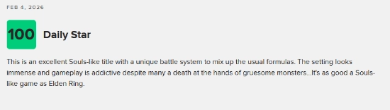 本作的媒体评分目前已正式公布,外媒Daily Star不仅给出了满分评价,还高度称赞其“完全能与《艾尔登法环》相媲美”。以下仅为该媒体总评部分的摘译内容: