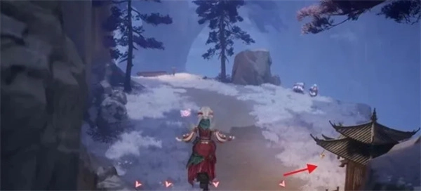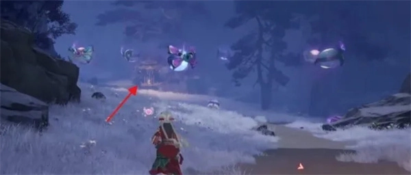 1、先传送到空鸣峡入口,乘着这条云向下飘,顺着这条路一直走到尽头。