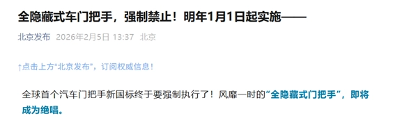 业内人士预测,随着中国率先禁止全隐藏式门把手,这一规定未来很可能被全球其他市场借鉴,成为汽车行业的统一规范。