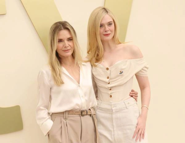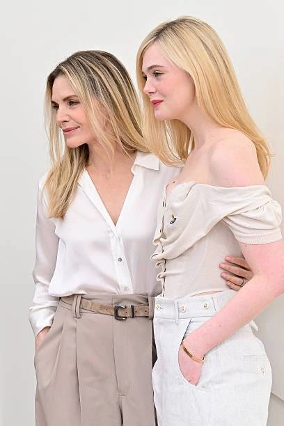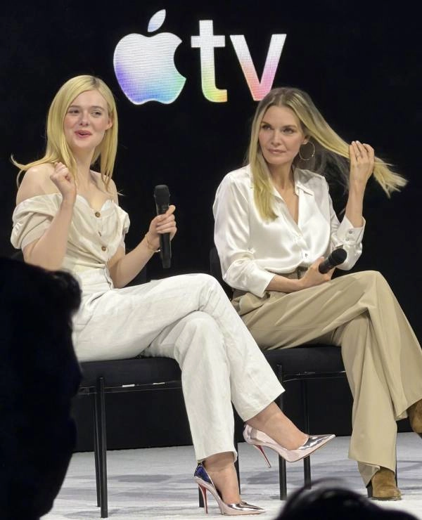Apple TV新闻发布活动当天,《玛戈没钱了》的主演米歇尔·菲佛和艾丽·范宁拍摄了写真。艾丽·范宁皮肤白皙得仿佛在发光,不过她的不少照片看起来还是带着点懵懂的感觉。