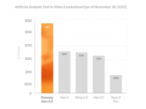 12月2日消息 当地时间12月1日(周一),美国人工智能初创企业Runway发布了新的视频模型Gen-4.5,该模型在独立基准测试中的表现超过了谷歌与OpenAI的同类产品。