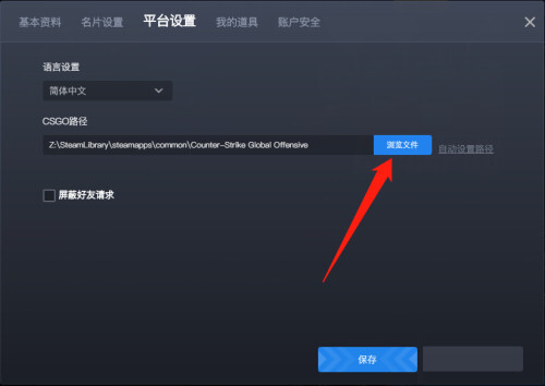 然后点击下方“CSGO路径”右侧的“浏览文件”按钮。
