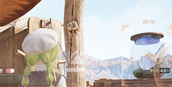 4、完成对话后,你会注意到旁边的木箱上放着一个罐子,借助这个罐子拍摄远处的蜗牛城。