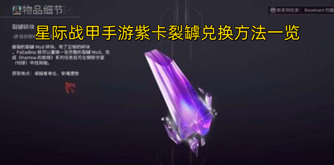 在《星际战甲》手游里,紫卡裂罅是不少玩家都会遇到的关键任务。大家得先收集裂罅碎块,再去找指定的NPC兑换。今天小编就给各位玩家带来详细的紫卡裂罅兑换攻略,帮大家顺利拿到想要的奖励!