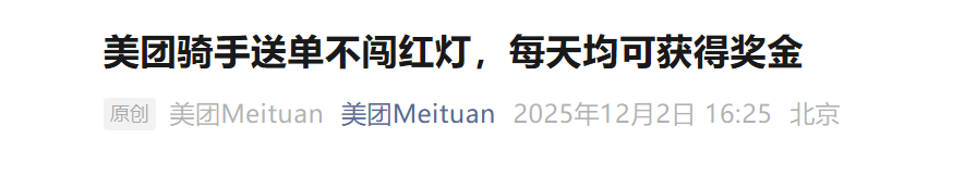 话说回来,从2022年开展的“服务星级”试点工作,到2025年计划在全国推行的“不闯红灯万元奖”活动,美团的一系列探索实践充分表明:外卖行业要实现健康可持续发展,必须建立在对劳动者权益的充分尊重和对安全底线的牢牢坚守之上。