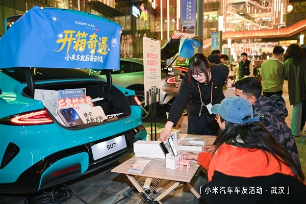 不少车主把后备箱用心布置成了移动小店:有的陈列着手工饰品,有的出售咖啡,还有人发起了小米17系列背屏挑战活动,现场氛围轻松又热闹。