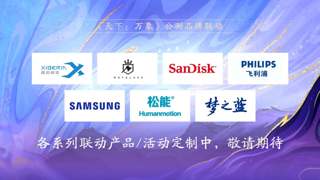 为贺三端互通、逆天改命的《天下:万象》之喜,海量品牌前来加盟,与天下IP携手,共同打造丰富定制豪礼!让少侠们在山海之外也能欣赏天下之美!
