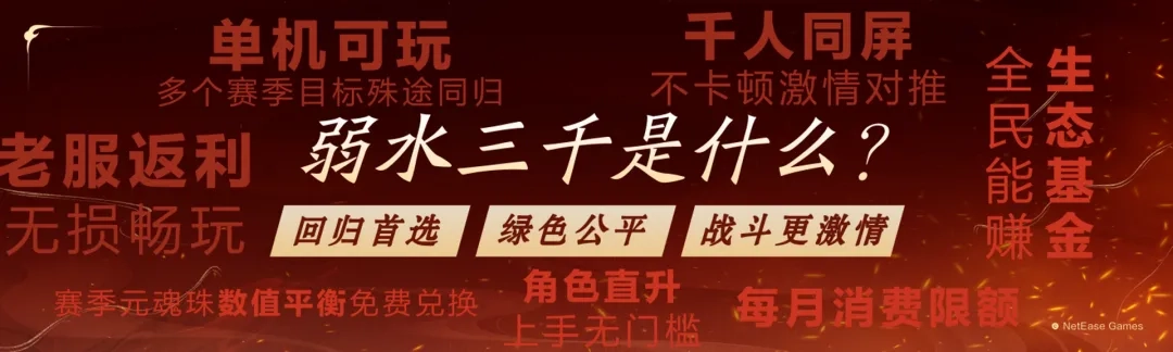 也正是因为有了这三个赛季的沉淀,我们很荣幸地向大家正式推出年度服【弱水三千】,同时赛季服【定山河】的第四赛季也会同步开启,期待与全体少侠一同用激情续写新的辉煌!