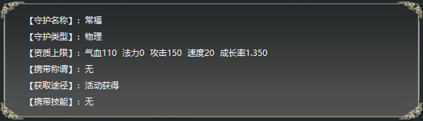 守护的成长潜力由成长率、气血初值、攻击初值、速度初值等资质共同体现。亲密度与欢乐度对守护的实战表现影响显著:亲密度左右着特殊技能的触发概率,欢乐度则直接作用于参战时的攻击力与速度加成。忠诚度关系到守护的参战成功率,玩家需通过战斗与驯养精心维系。